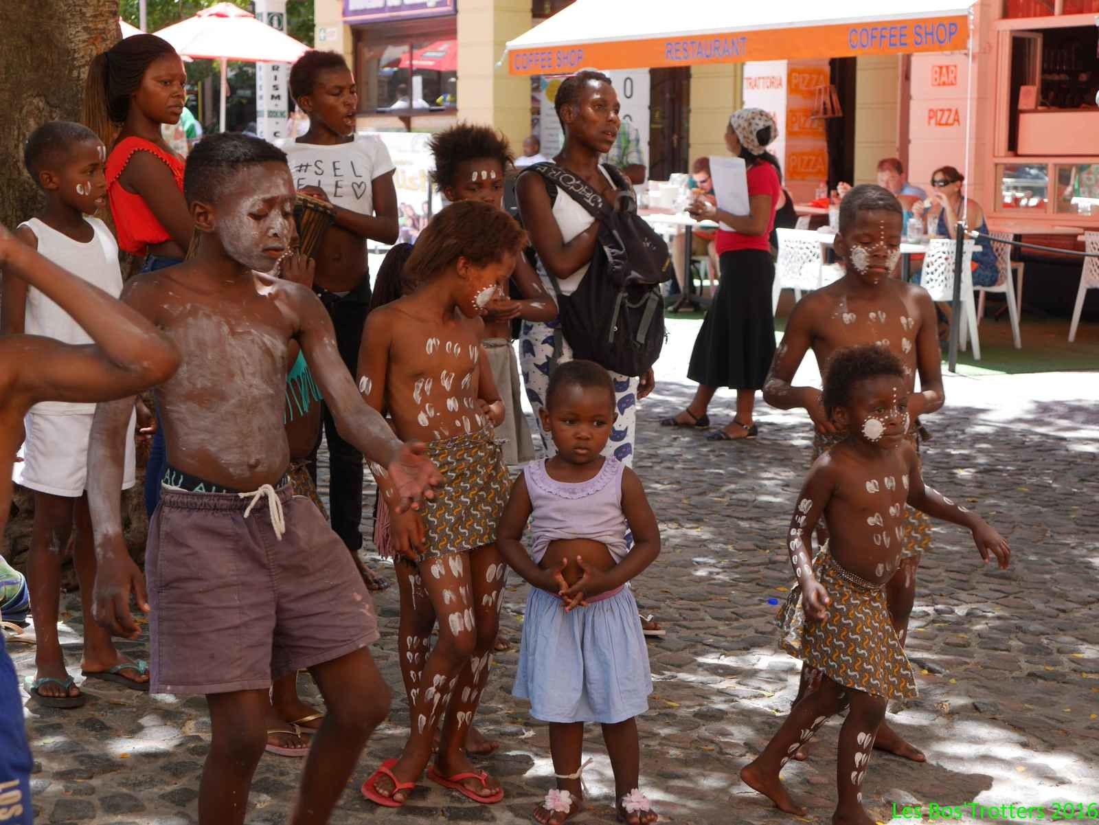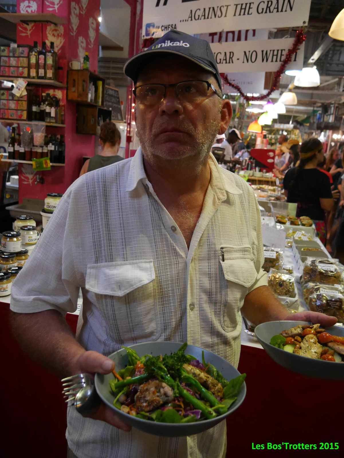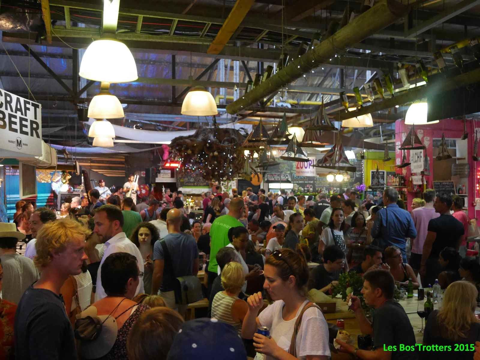 Après ce spectacle magnifique, nous décidons d'aller visiter le marché. Selon un principe assez spécifique à l'Afrique du Sud, différents commerces et restaurants se rassemblent dans une halle, un lieu couvert. L'ambiance y est étouffante de chaleur mais les boissons en tout genre sont là pour nous rafraîchir! Excellents Mojitos! Nous y resterons même pour déguster toutes sortes de spécialités malgré l'affluence des lieux.