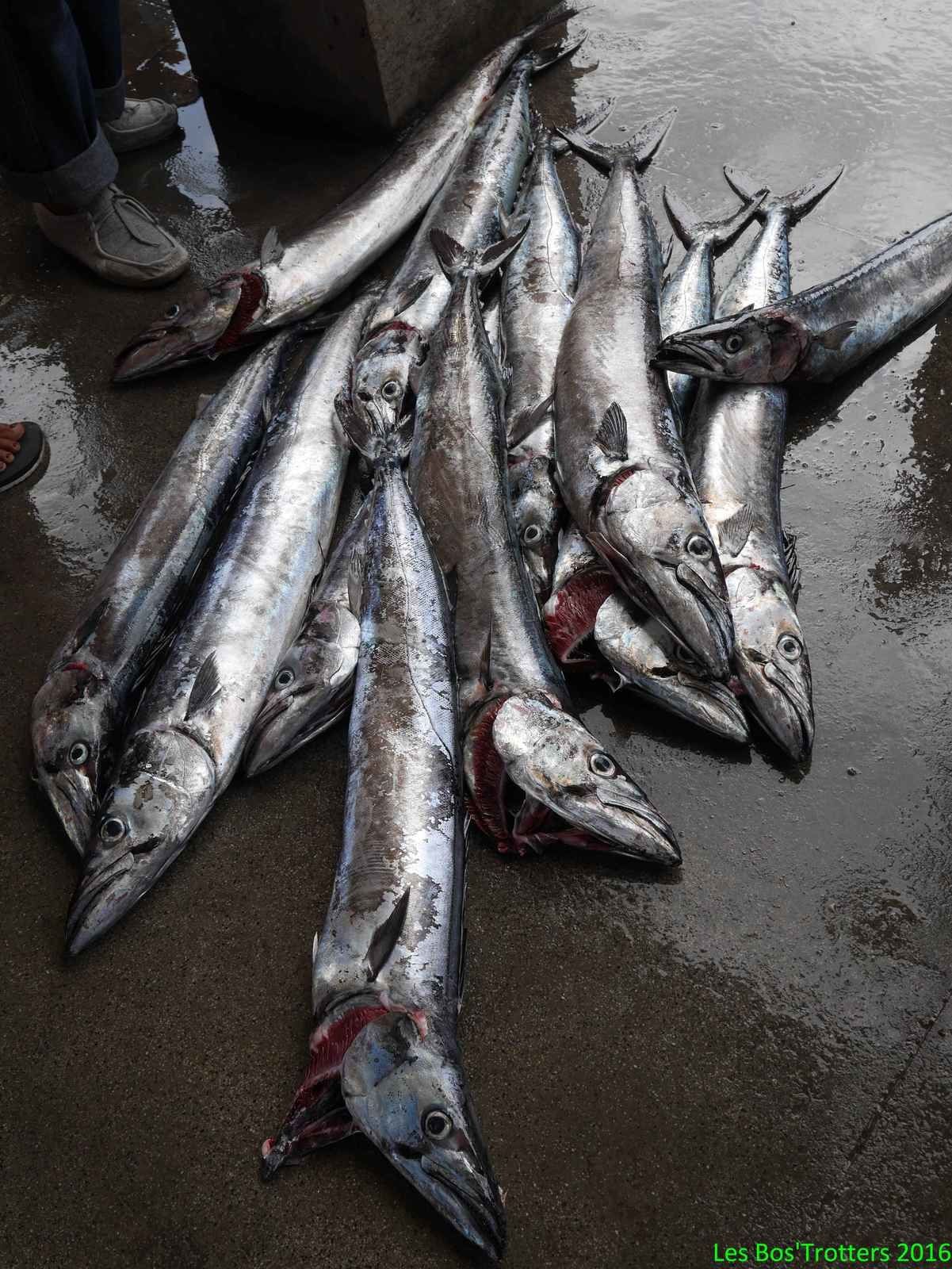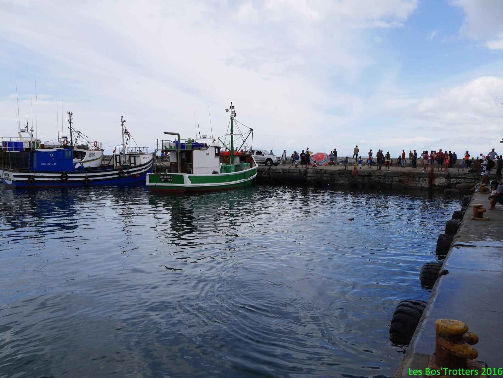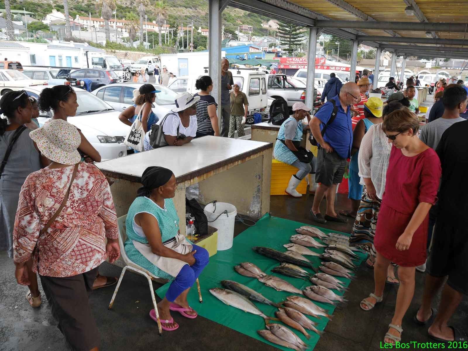 Le train traverse la ville puis serpente entre mer et montagne à quelques mètres seulement des vagues. Les cabanes de plages colorées annoncent l'arrivée sur Kalk Bay où nous sortons. Cette ville balnéaire est également un port de pêche où nous achetons le poisson fraîchement débarqué que nous consommerons le soir chez Nadine et Peter. Mais pour le déjeuner, nous devons impérativement respecter la tradition et déguster un Fish and Chips dans le port chez Kalky's. Et bien que nous trouvions dommage de frire du poisson frais, nous devons admettre que celui-ci était excellent.
