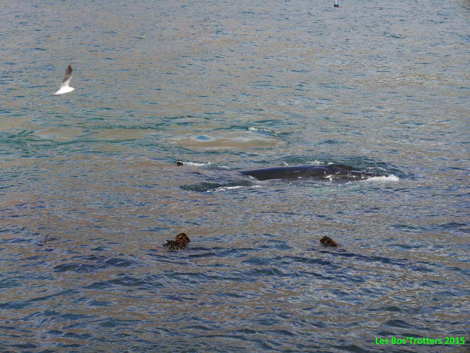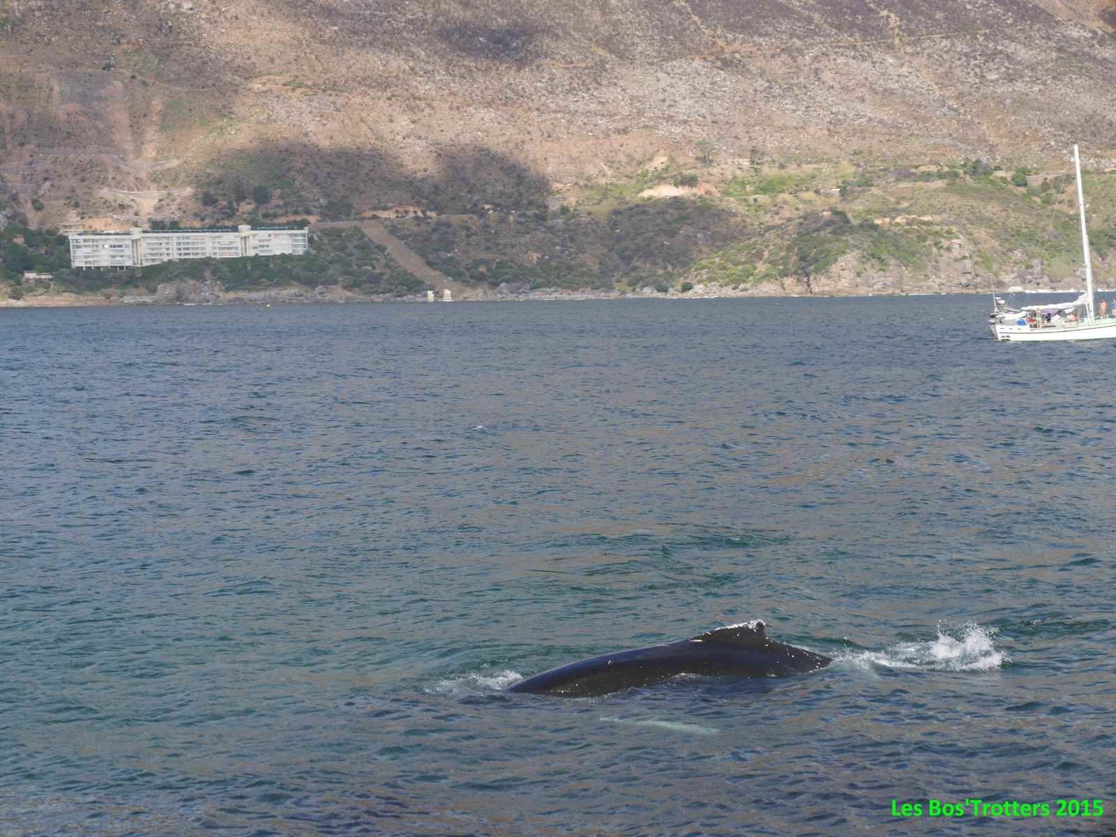 Une toute autre surprise nous attend à Hout Bay alors que nous arrivons dans le port. Une baleine se laisse admirer à quelques mètres du bord accompagnée de deux otaries.
