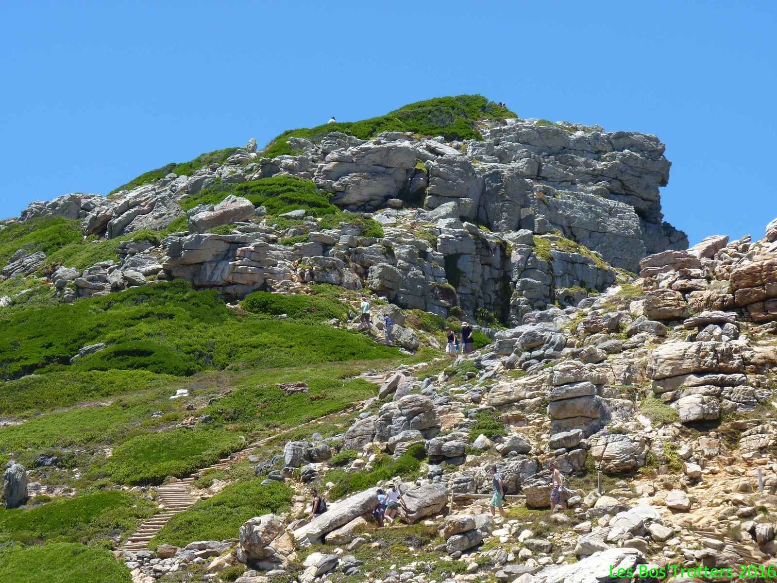Son seul nom fait rêver! Le cap de Bonne Espérance signifie tant de choses! Entre récits d'explorateurs et cours d'histoire-géographie, ce lieu est mythique. Nous partons à sa découverte à pied et découvrons avec surprise que le cap n'est pas un cap mais bien deux capes côte à côte. La pointe du Cap se trouve à l'est et termine la péninsule de façon majestueuse. Plus nous descendons vers la pointe plus le lieu est impressionnant. Il s'étire indéfiniment et lorsque l'on se retourne vers le nord, l'impression d'être au bout du monde est tout à fait réelle!