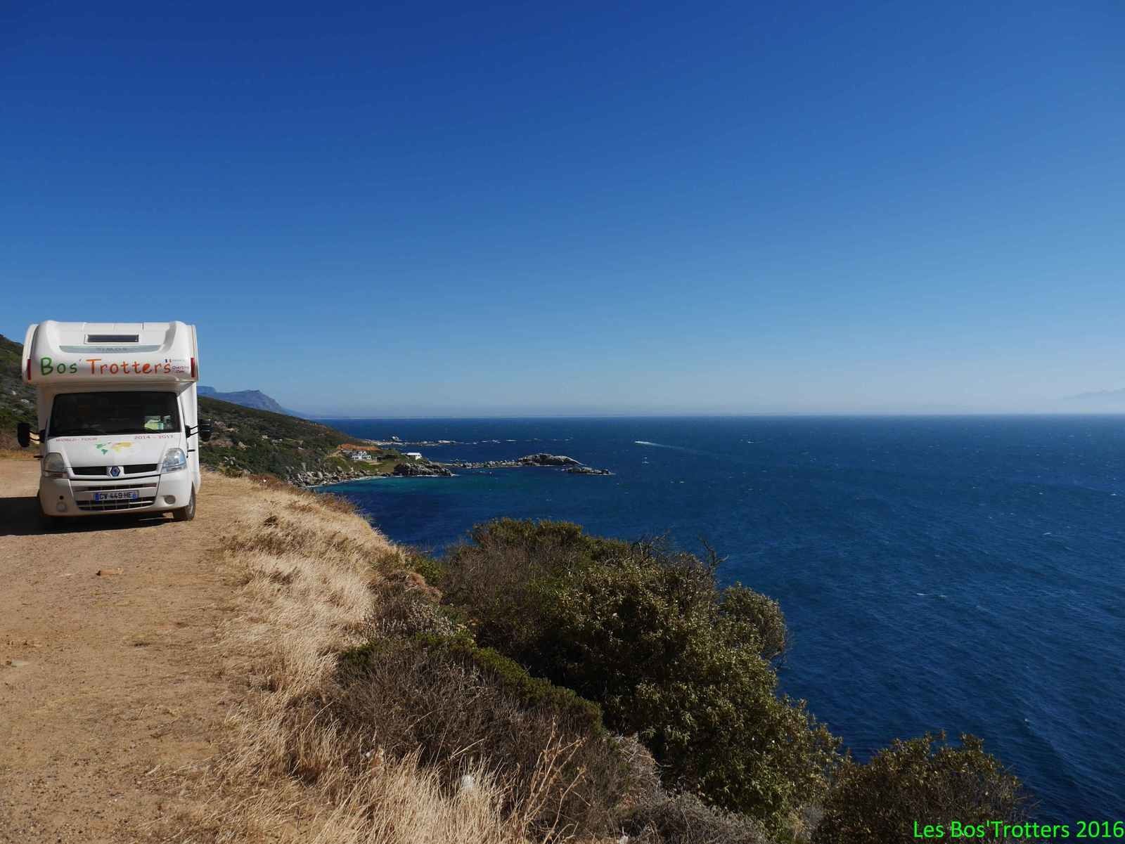 Nous quittons le domaine Rickety Bridge qui nous avait accepté pour la nuit et prenons la direction de la pointe du Cap. La chaleur de ce 1er janvier nous incite à aller plonger dans l'océan. Un bain de mer au 1er janvier pourrait paraître fou, mais sous ces latitudes cela nous semblait idéal. Malheureusement il semble que nous ne soyons pas les seuls à avoir eu cette idée et nous passons des heures dans les bouchons avant d'opter pour une route surplombant la côte et qui nous laisse entrevoir la véritable folie!!!