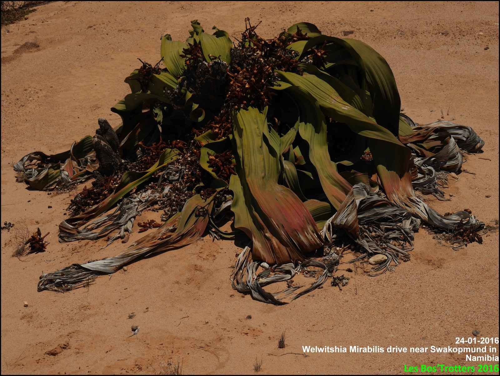Nous découvrons aussi que des plantes millénaires y poussent. La Welwitschia Mirabilis. Si son aspect n'a rien de très avenant, sa capacité à endurer des conditions climatiques extrêmes est étonnante. Nous partons donc sur un circuit de pistes qui nous amène jusqu'au spécimen le plus ancien connu à ce jour. 1500 ans. Nous bivouaquons ici dans le désert dans la plus grande solitude pendant deux nuits. Enfin pas totalement seul car la faune est discrète mais elle laisse des traces qui la confondent. Reptiles, antilopes, petit gibier mais aussi, et c'est moins agréable, des centaines de tiques qui grimpent sur nos jambes, les chaises, les tapis. Les enfants finiront la séance cinéma à l'intérieur du camping-car après une inspection minutieuse. Mais heureusement aucun de nous ne s'est fait piquer. Il faut dire que la taille des bestiaux les dénoncent bien avant qu'ils n'agissent.
