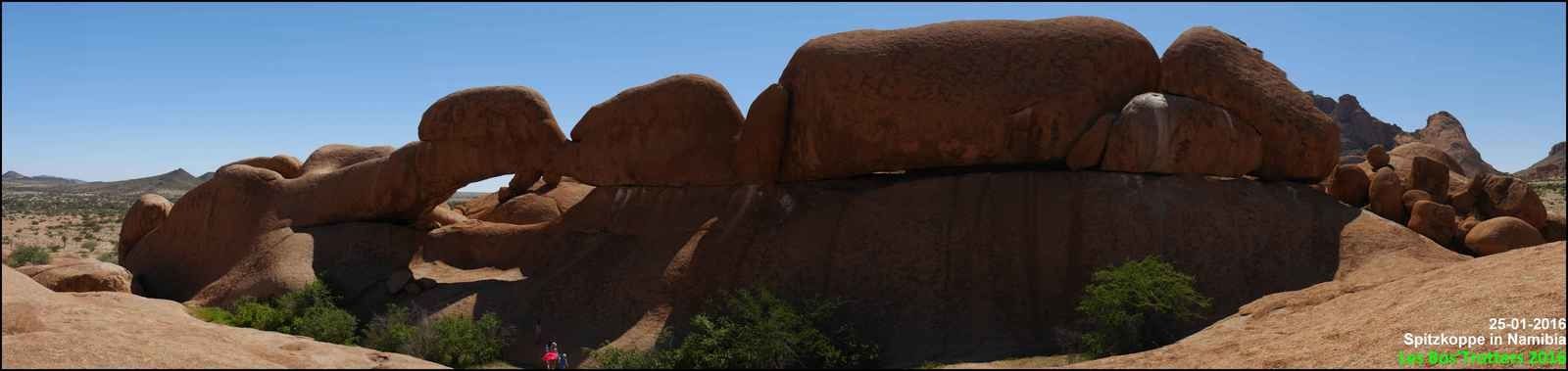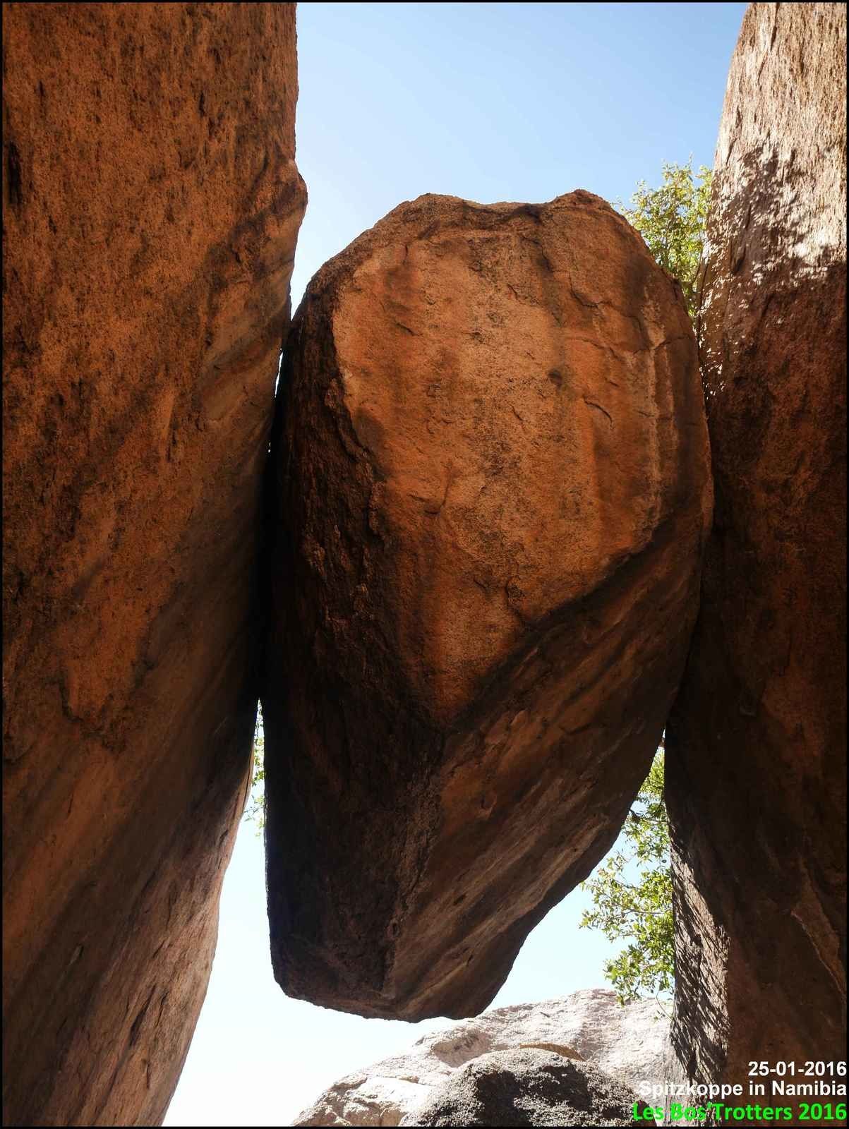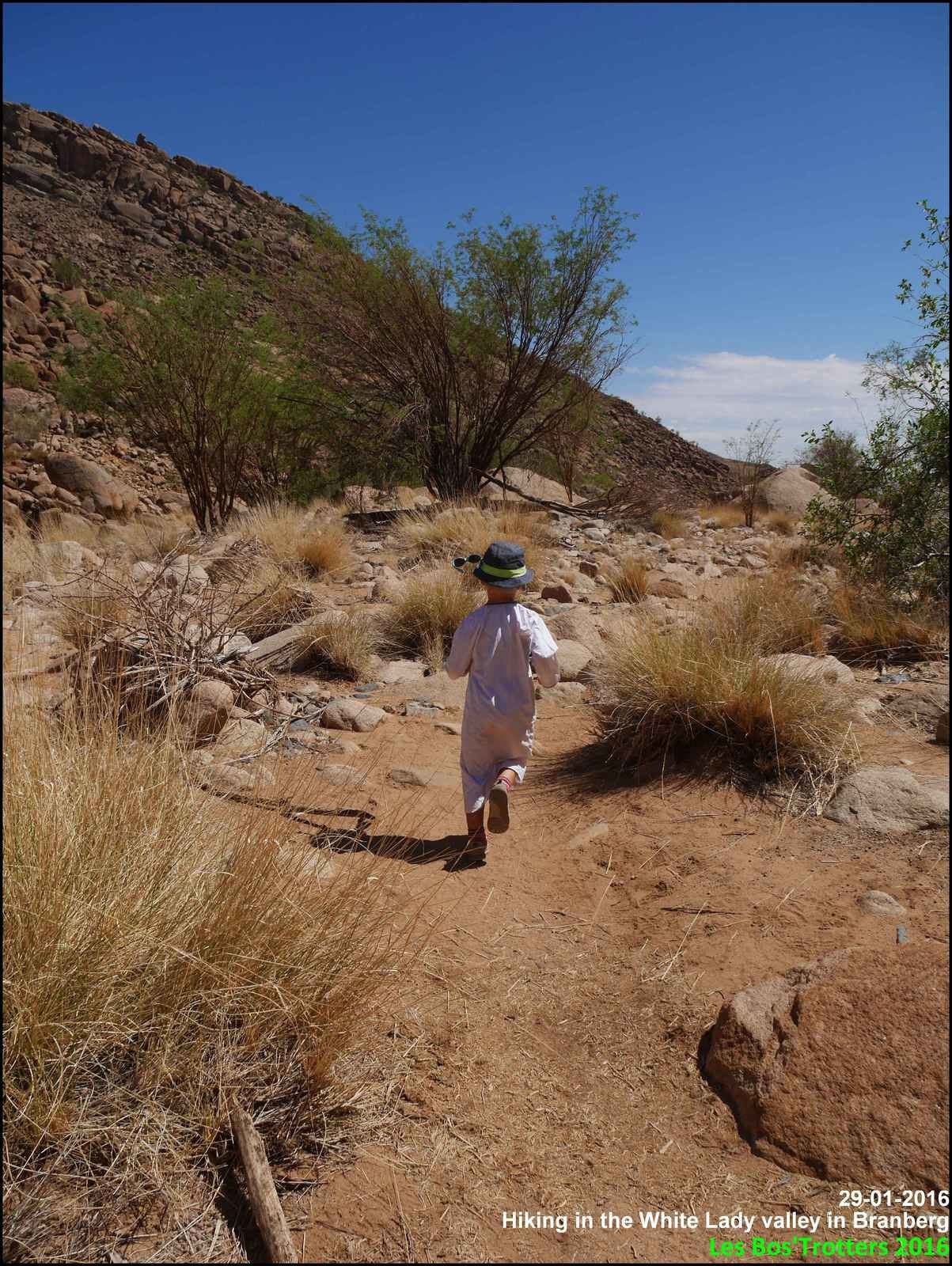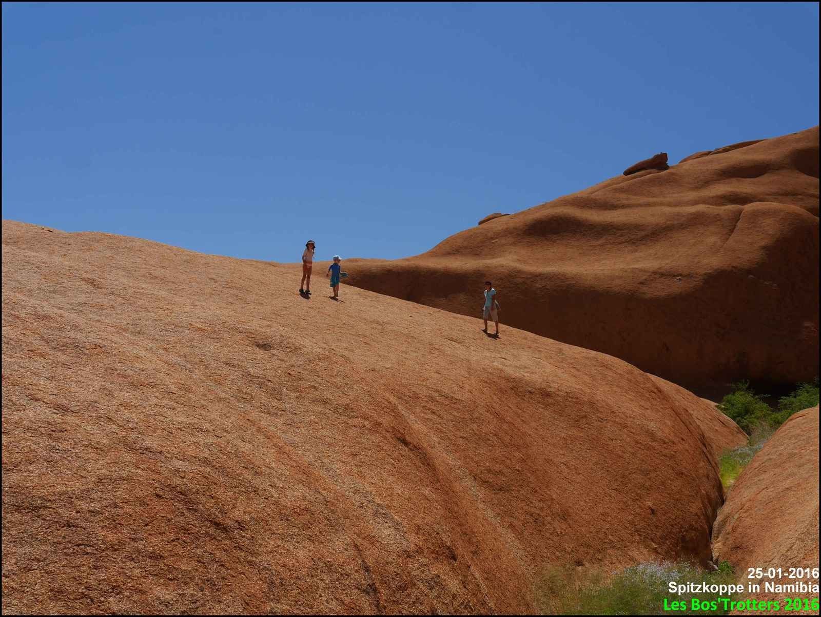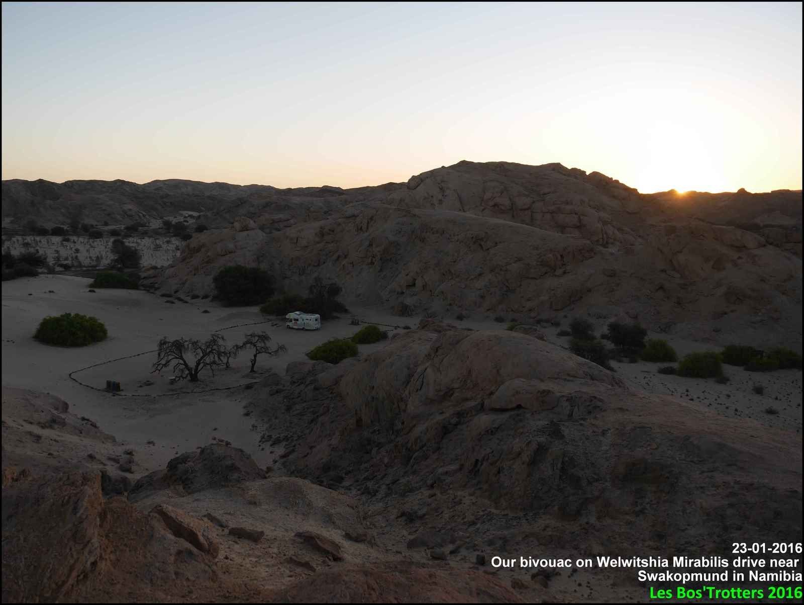 Alors que nous sommes plutôt à la fin de notre périple africain, une autre famille française démarre tout juste son voyage. Autre famille, autre mode de transport, ils ont opté pour un 4x4 avec une remorque tente dont seuls les Sudaf ont le secret! Nous nous donnons rendez-vous d'abord dans le camping à la piscine à Uis avant d'aller bivouaquer dans le désert au pied d'une "bulle" de granit qui nous offre une vue splendide sur le Brandberg.