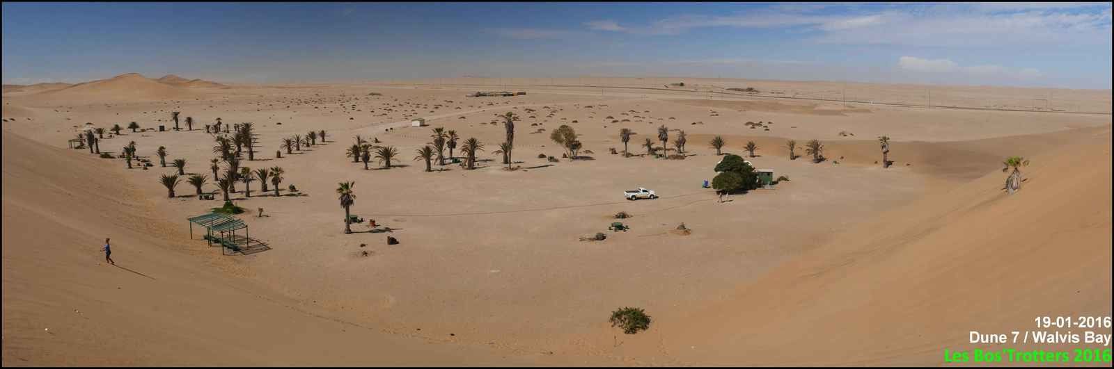 Notre premier arrêt à Walvis Bay se fait au pied de la dune 7 située comme son nom l'indique à 7km de la ville. Un peu trop venteux nous irons nous poser en ville pour la nuit. Le bivouac y est certes un peu moins sauvage qu'à la dune 7 mais au moins nous pouvons ouvrir les fenêtres sans manger du sable.